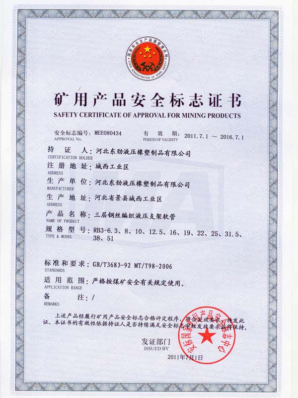 • 鋼編管國際標準產(chǎn)品標志證書